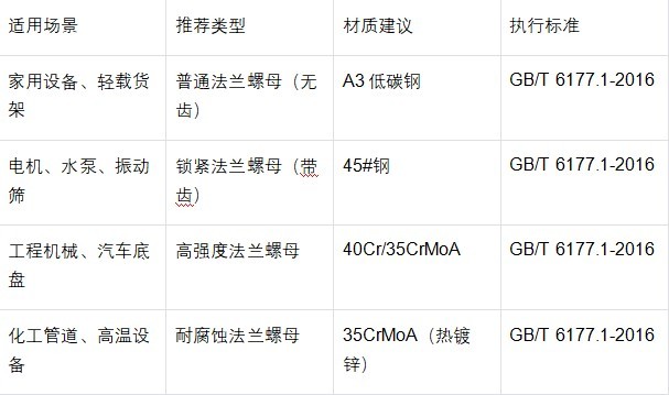 Klíčem k použití přírubových matic je "výběr správného typu správné instalace přizpůsobené pracovním podmínkám", aby se zabránilo uvolnění nebo selhání v důsledku nesprávného výběru nebo provozu.